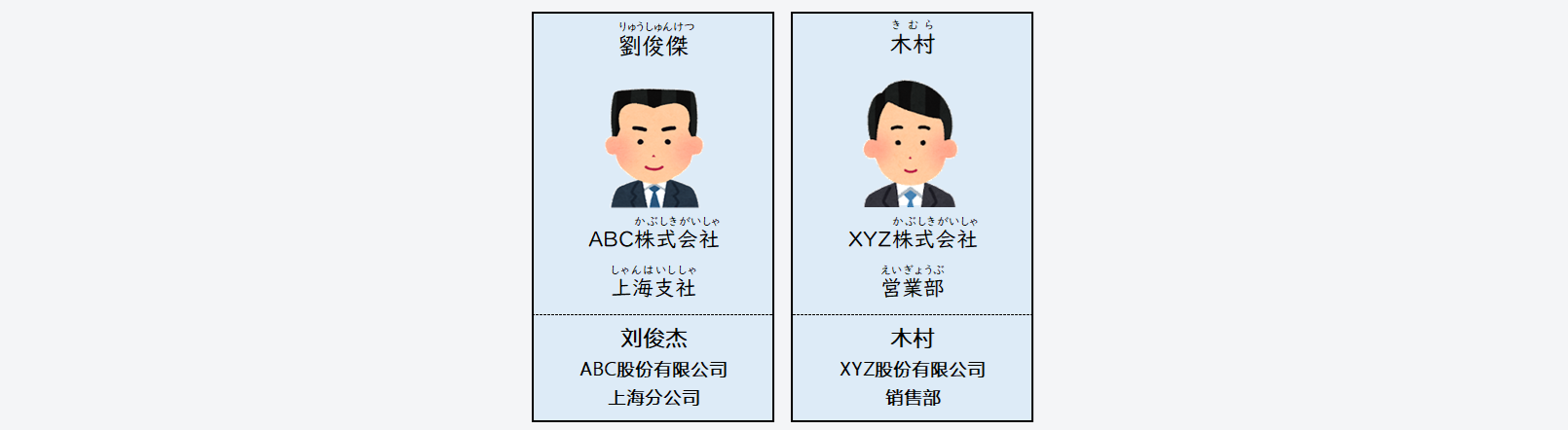 👉はじめてったときめいこうかん(初次见面时⇒交换名片)