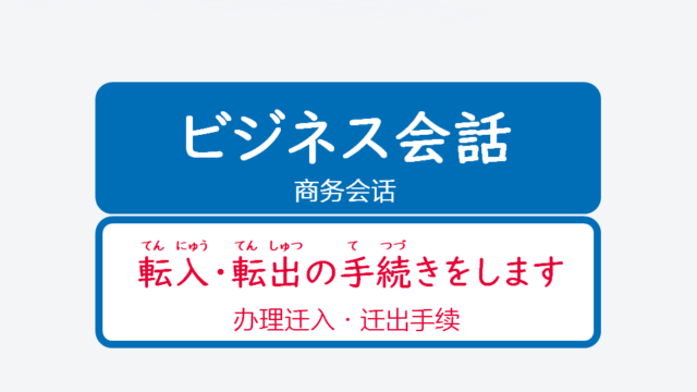 商务会话 【会話】転入・転出の手続きをします(办理迁入・迁出手续) 外国人:すみません、転入届を出したいんですが。(外国人:不好意思,我想提交迁入登记申请。)職員:外国人の方ですか。(职员:您是外国人吗?)外国人:はい。(外国人:是的。)職員:初めて転入届を出されますか。(职员:您是第一次提交迁入登记申请吗?)外国人:はい。(外国人:是的。)・・・ 2026.03.02 【会話】転入・転出の手続きをします(办理迁入・迁出手续)商务会话