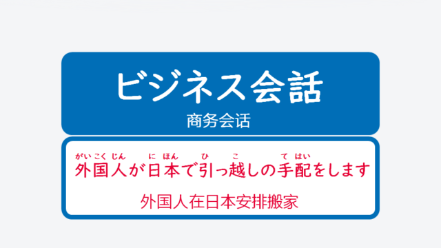 商务会话 【会話】外国人が日本で引っ越しの手配をします(外国人在日本安排搬家) 引越会社社員:ABC引越センターでございます。(搬家公司员工:您好!这里是ABC搬家公司。)外国人:すみません。引っ越ししたいので見積りに来てもらいたいんですが。(外国人:不好意思,我想搬家,想请你过来估价。)引越会社社員:かしこまりました。だいたいいつ頃のお引越しをお考えですか。(搬家公司员工:好的。您大概打算什么时候搬家?)・・・ 2026.03.02 【会話】外国人が日本で引っ越しの手配をします(外国人在日本安排搬家)商务会话