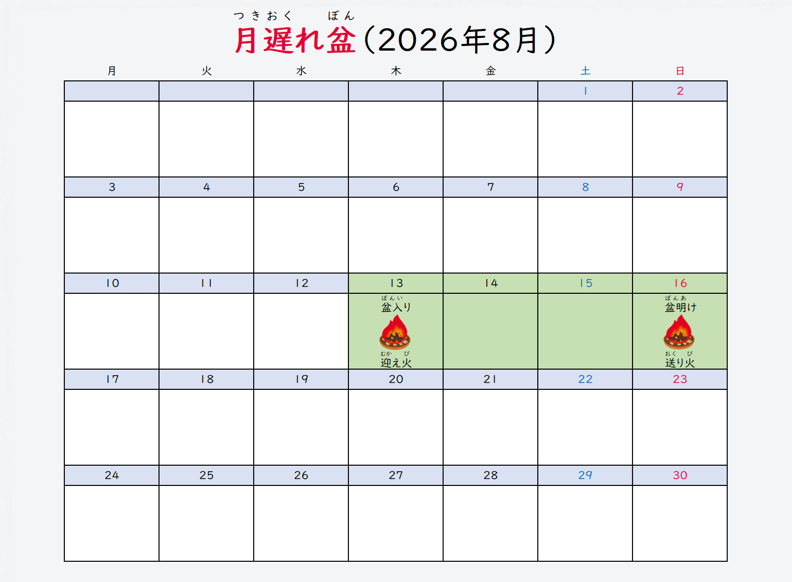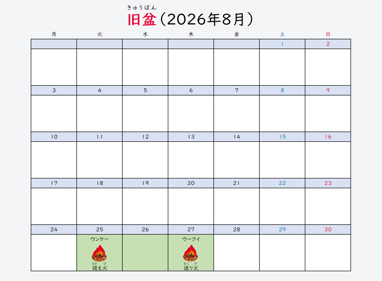 期間:旧暦7月13日-7月15日(盂兰盆节期间)