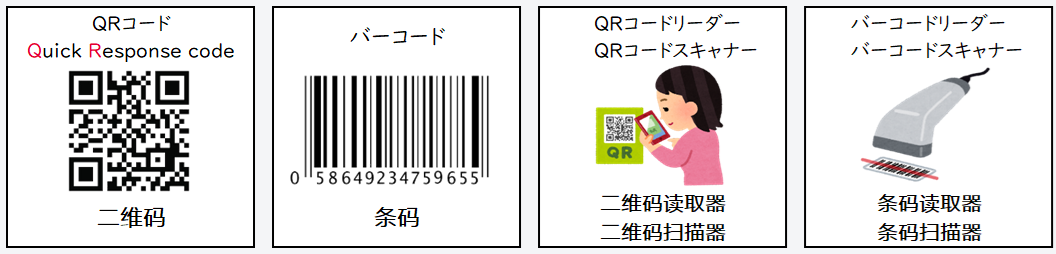 | QRコードスキャンでQRコードをスキャンします | 用二维码(QR Code)扫描器扫描二维码 |