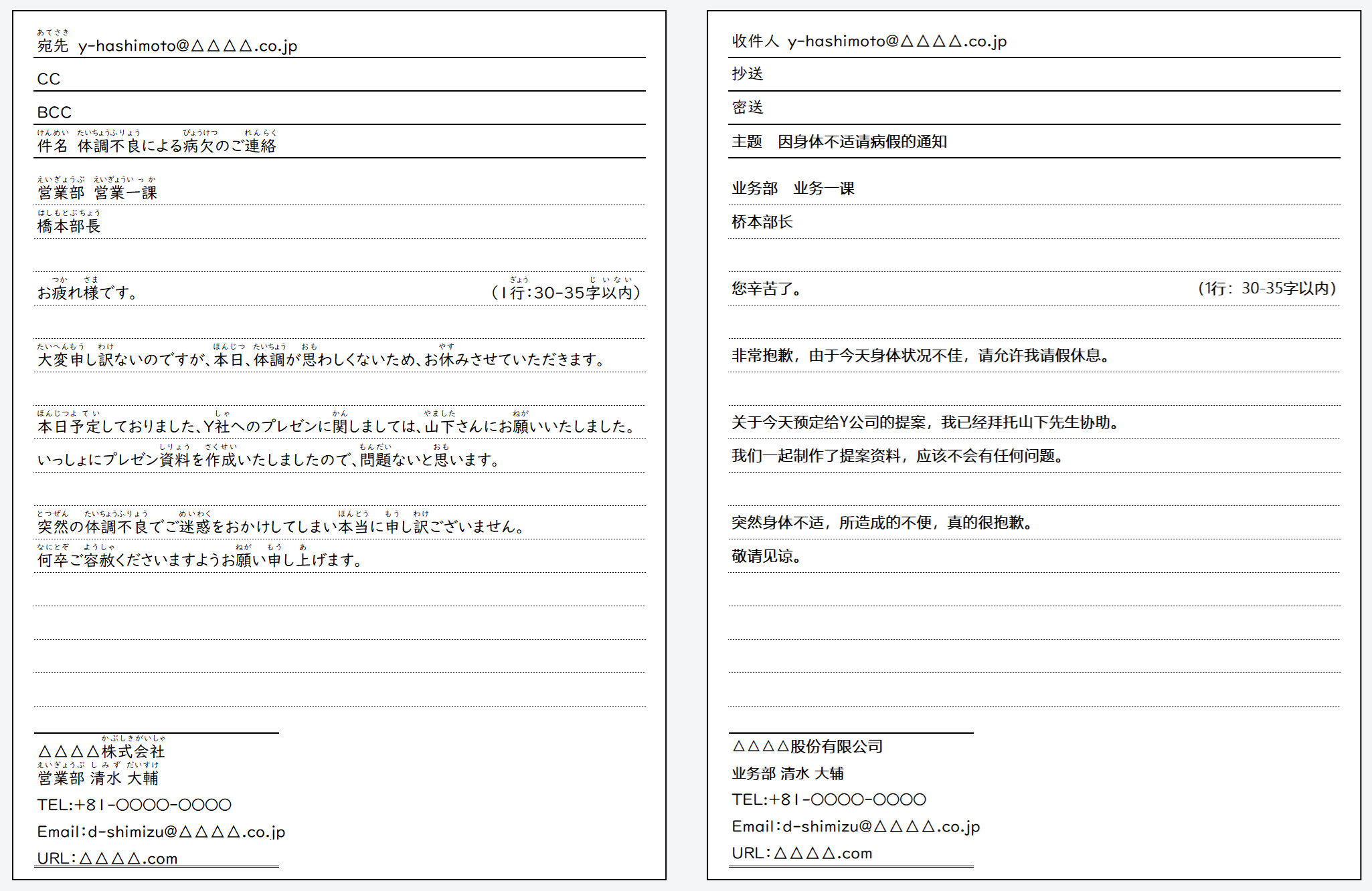 しゃないびょうけつのおびメール公司内部:病假道歉信
