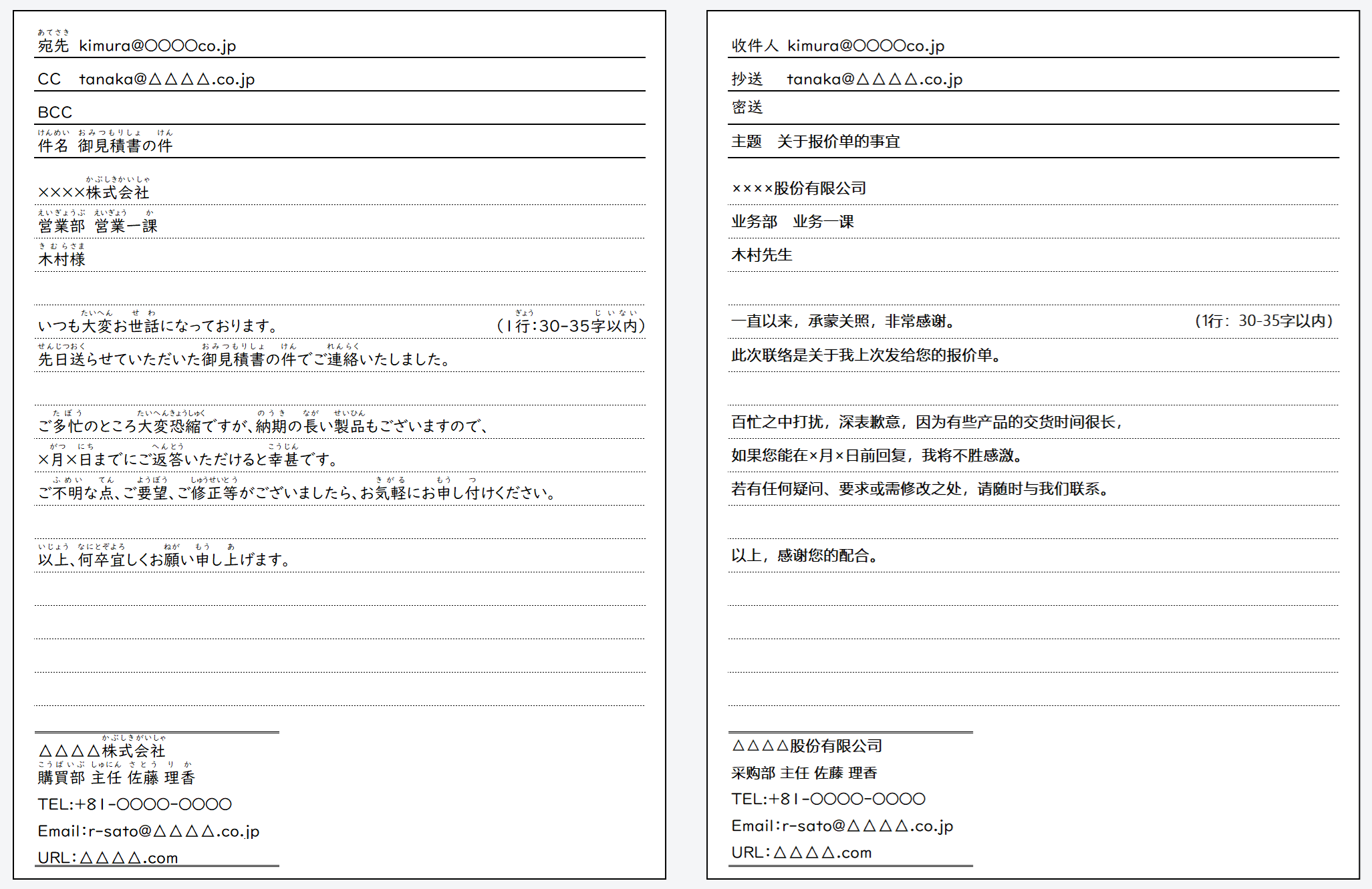 御見積書の件 | 关于报价单的事宜 |